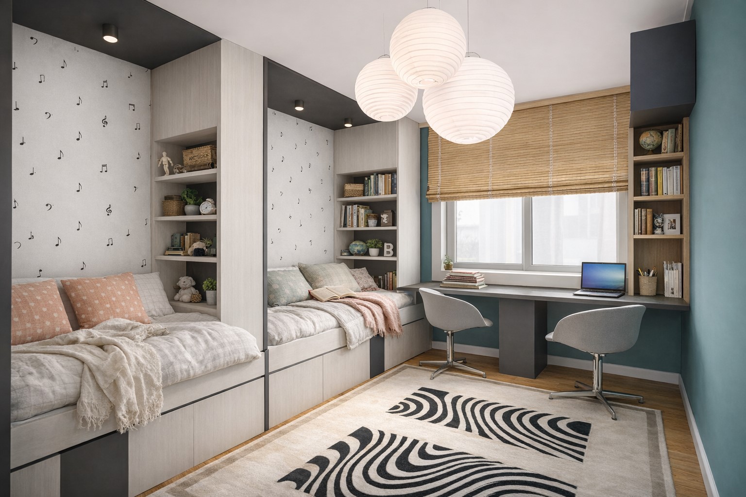 Rezultat rada je krasan i umirujući prostor koji odiše toplinom, i koji se, što je najvažnije, jako svidio klincima!