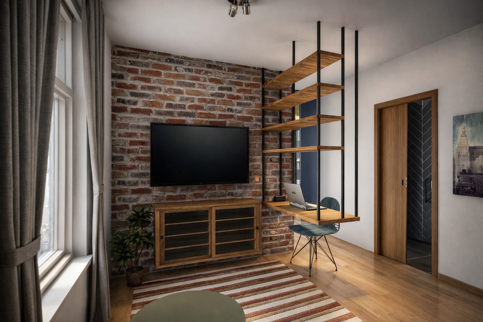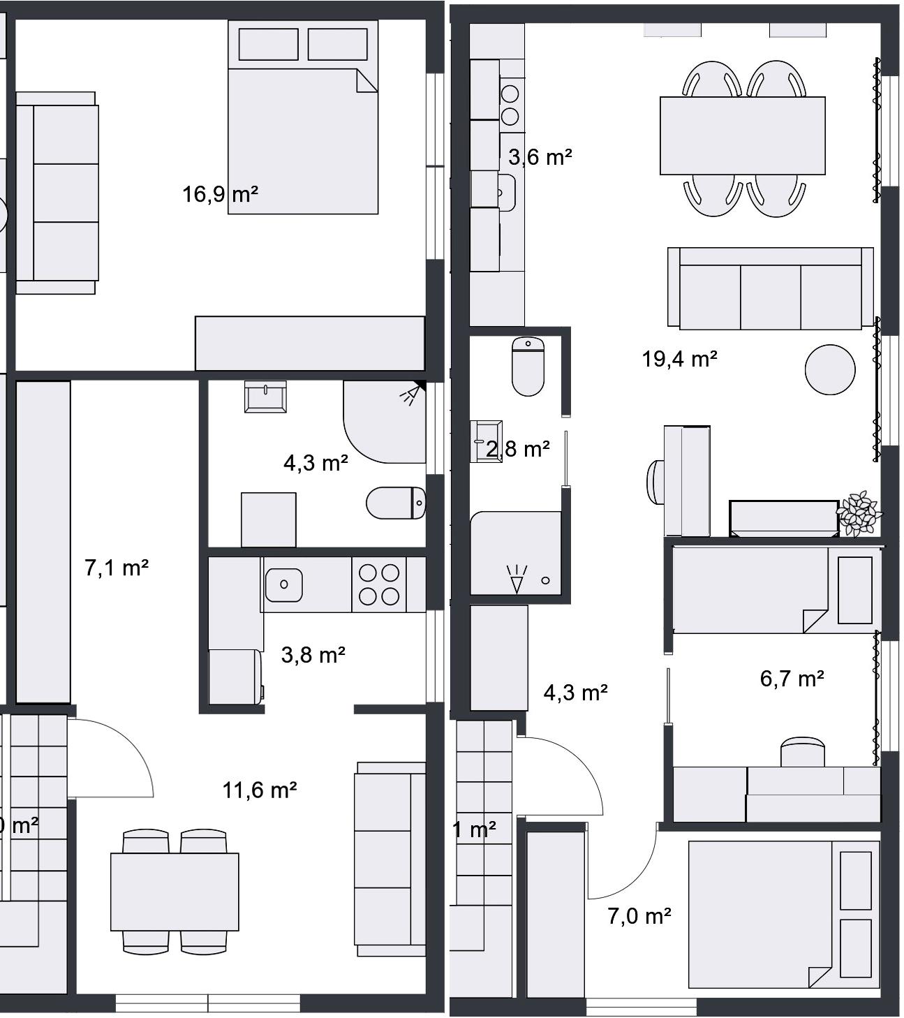 Za ovako mali stan, stol je stvarno poštene veličine i čak bi i mogao pozvati nekoga na ručak. Možeš ga i raširiti i dodati par stolica (npr. sklopive su i imaš ih negdje u pričuvi). Ogledalana zidu čine se ko neki dodatni otvori, a ujedno imaju plitke police za staviti nešto sitno. U svakom slučaju, nije lako izmisliti nešto novo za prazne zidove.